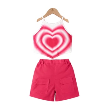Conjuntos de ropa de verano para niños, pantalones cortos informales sin mangas con tirantes, Chaleco con volantes, patrón estampado, manga larga para niños y niñas