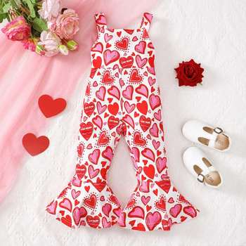 Mono de bebé para el día de San Valentín, Pelele de beso de labios con corazones acanalados y pantalones acampanados, ropa infantil de verano