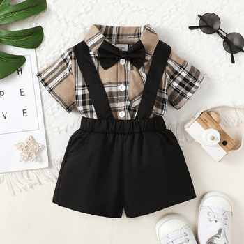 Trajes formales de algodón para niños pequeños, camisa con pajarita de estilo británico suave y conjunto de pantalón corto, ropa de bebé de nuevo estilo