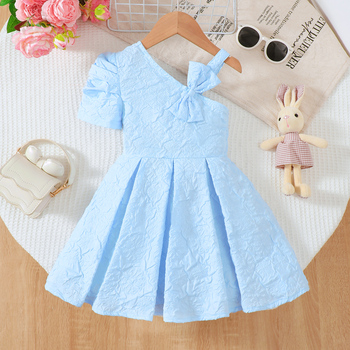 Vestido de princesa de verano para niñas, manga pequeña de un hombro, estampado de flores dulces, diseño sin mangas, decoración de botones, tela de punto ODM