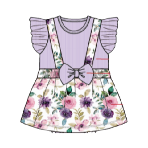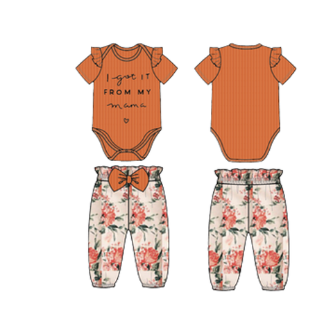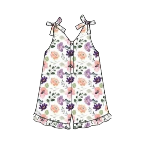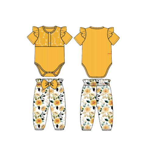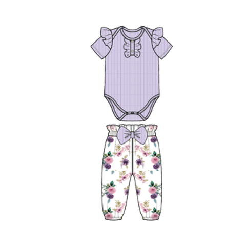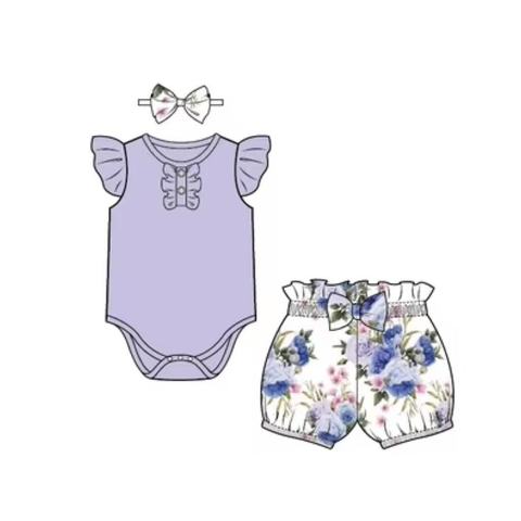 ODM 아기 소녀 옷 세트 골지 짧은 소매 장난 꾸러기 꽃 인쇄 탄성 허리 반바지 유아를위한 0-24 개월