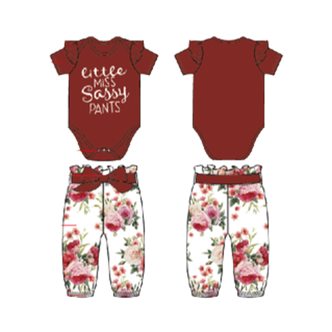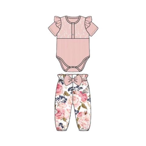 핫 세일 캐주얼 스타일 솔리드 라이트 핑크 장난 꾸러기 표범 바지 ODM 아기 의류 세트 리빙 디자인