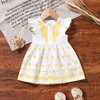도매 사용자 정의 로고 소녀 원피스 귀여운 캐주얼 아이 원피스 소녀 아기를위한 프릴 인쇄 패턴