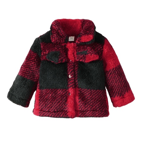 소녀를위한 새로운 유아 소녀 격자 무늬 옷깃 칼라 버튼 디자인 코트 재킷 소년 아기 어린이 겨울 어린이 따뜻한 겉옷