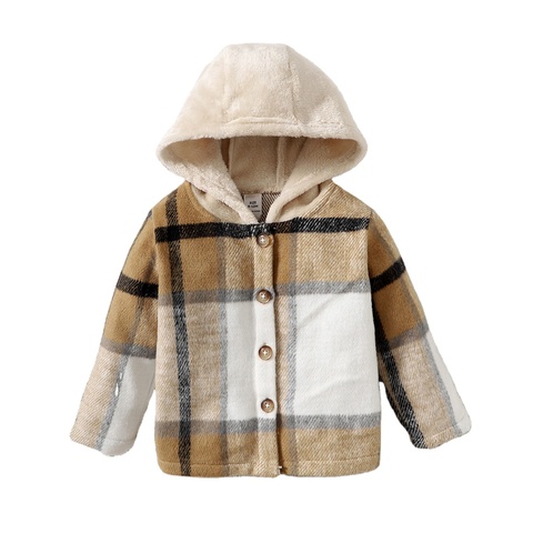 0-10 세 유아 아기 소년 소녀 후드 코트 아웃웨어 긴 소매 버튼 다운 격자 무늬 셔츠 캐주얼 까마귀 재킷 포켓