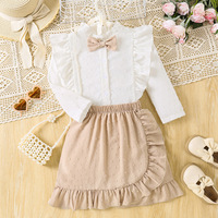 Catpapa 로컬 창고 여아 스커트 세트 레이스 화이트 셔츠 나비 넥타이 패치 워크 프릴 스커트 아동 2 종 의류 세트