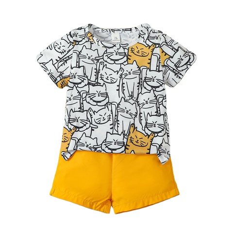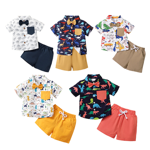 아기 소년 의류 세트 인쇄 반팔 티셔츠 2 종 세트 아기 소년 부티크 의류 도매
