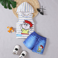 Catpapa 지역 창고 아기 여름 아기 의류 세트 어린이 조끼 까마귀 데님 반바지 세트 면 소년 세트