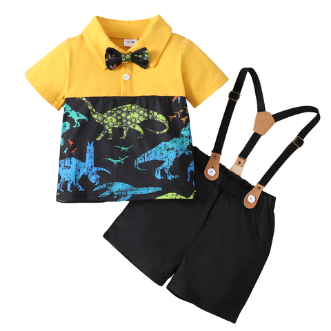 소년 의류 세트 반소매 신사 의상 옷 아이 파티 셔츠 탑 + 멜빵 반바지 아기 정장